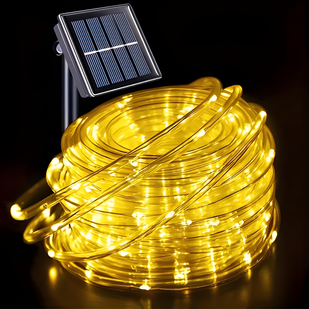 💡 Iluminá tus espacios con estilo con la manguera de luces LED solares. Perfecta para decorar balcones, patios, jardines o eventos, aportando una luz cálida y acogedora.