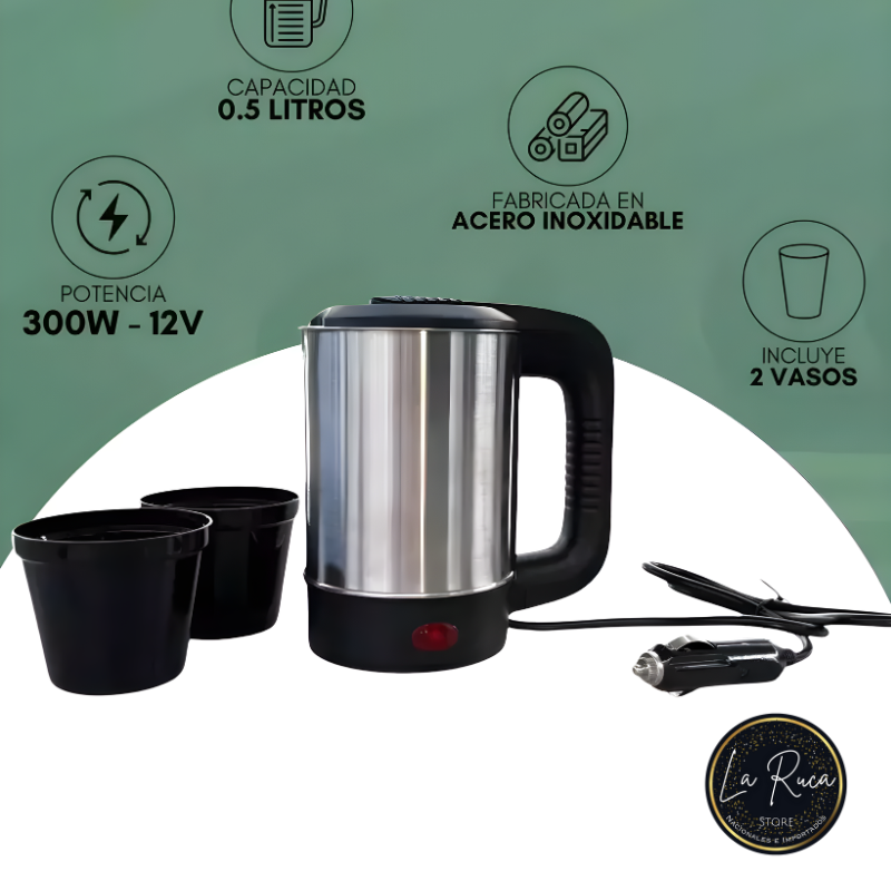 🚗 Pava Eléctrica para Auto Tokyo – 500 ml con Vasos ⚡