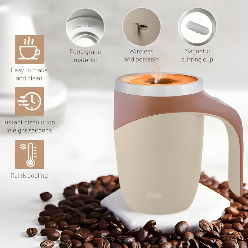 La taza revolvedora automática combina tecnología y diseño para quienes disfrutan de su bebida sin complicaciones.